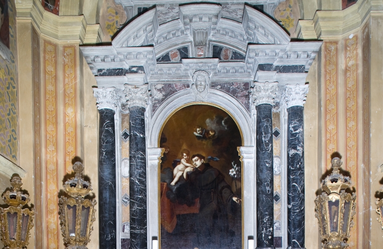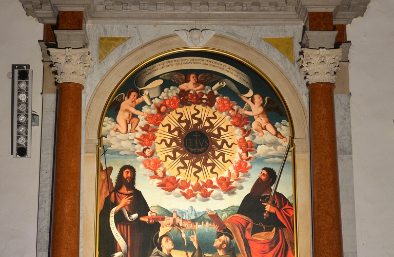 Oltre all’altare maggiore la chiesa ha ancora sei altari laterali. Partendo dall’entrata verso sinistra, incontriamo come primo l’altare del nome di Cristo. La pala originaria è tra le opere d’arte che ancora si trovano in Italia. Nella cappella laterale c’è l’altare di S. Antonio di Padova con la pala d’altare, opera di Pietro Bellotti. Sulle pareti e nelle nicchie della cappella sono riprodotte immagini della vita di San Antonio, sotto la cupola i quattro evangelisti. Chiude la parte sinistra della navata l’altare della Madonna di Lourdes.