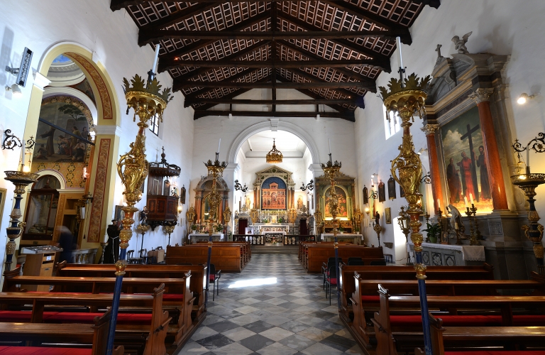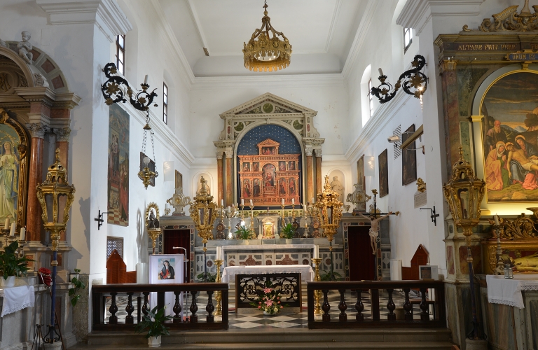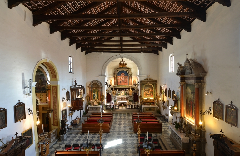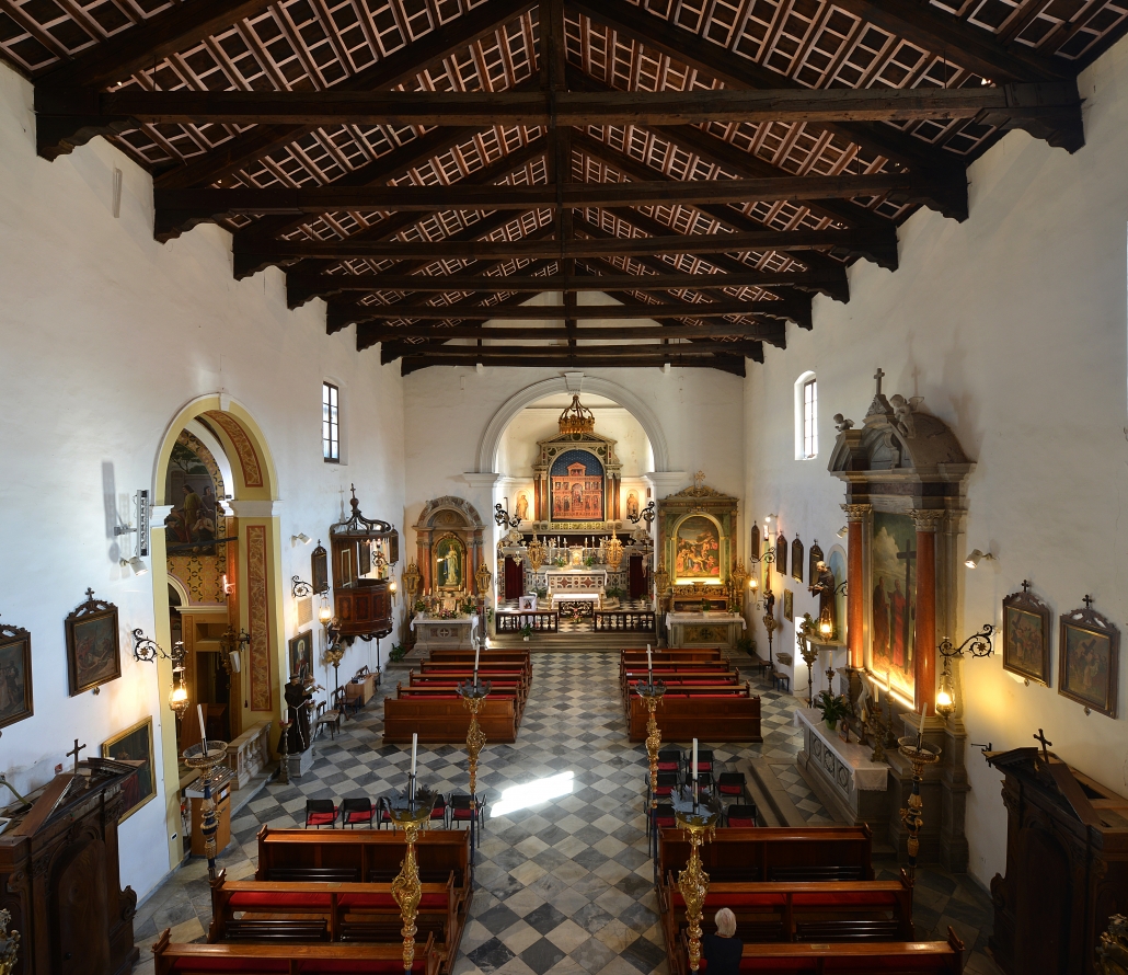 L’aspetto attuale della chiesa è dovuto agli interventi del barocco eseguiti negli anni venti del XVII secolo. L’oratorio si trova nel presbiterio dietro l’altare maggiore a conclusione dell’ampia navata centrale. L’oratorio è il luogo di preghiera per la liturgia delle ore. Il coro ligneo dell’oratorio risale alla fine del secolo XV o agli inizi del secolo XVI –è stato restaurato negli anni 2000–2005.