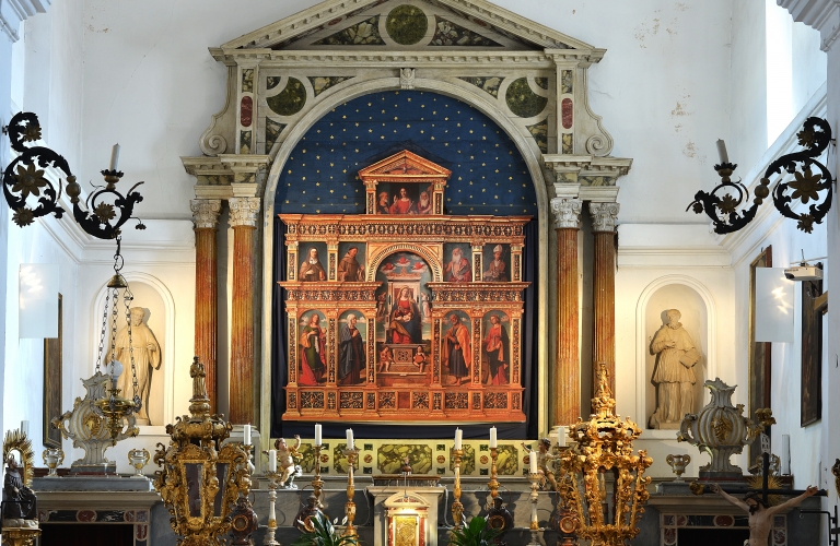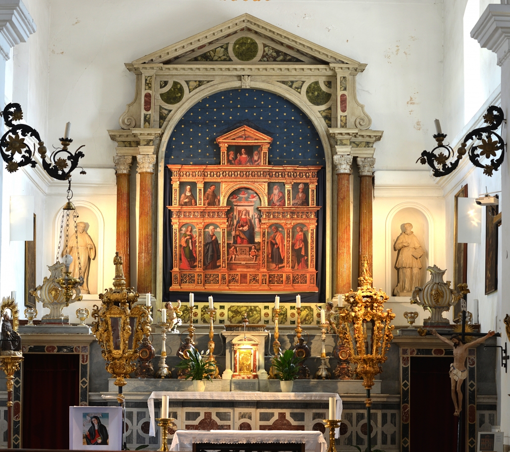 L’altare maggiore è privo del polittico originario di Cima da Conegliano, la Madonna col bambino e santi, che si trova in Italia. Sul polittico, tra i santi raffigurati, c’e anche Sant’Anna, patrona della chiesa e madre della Vergine Maria. La festa di Sant’Anna si celebra il 26 luglio assieme alla festa di suo marito San Gioacchino. Sulla parete a sinistra dell‘altare maggiore c‘è la bellissima pala della Madonna e Sante interceditrici nella malattia: Santa Maddalena, Santa Caterina d’Alessandria, Santa Apollonia e Santa Lucia.