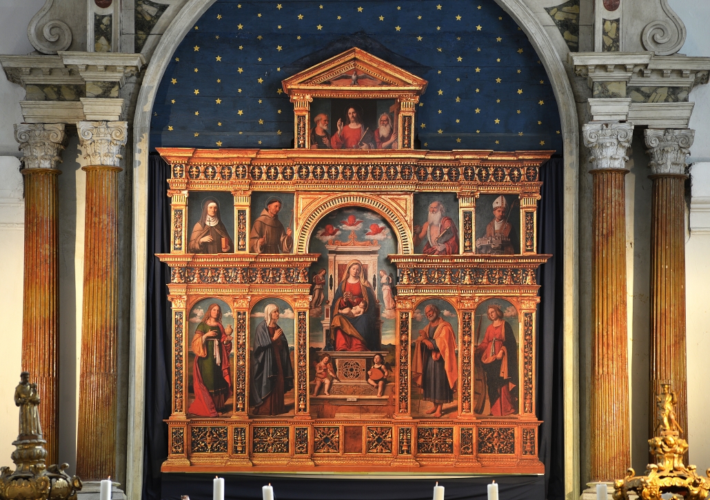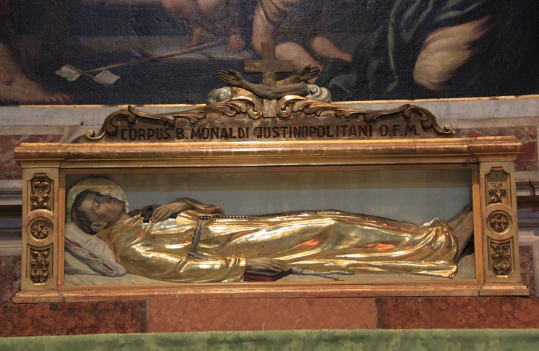 Nel 1940, all‘inizio della guerra, dalla chiesa e dal convento furono alienate almeno 65 opere d‘arte. L‘opera mancante più famosa è senz‘altro il polittico di Cima da Comegliano, la Madonna col bambino e santi, del 1513. Tra gli altri cimeli menzioniamo ancora la Venerazione del nome di Cristo e santi (1541) di Benedetto Carpaccio e il Lamento sul Cristo morto di Gerolamo da Santacroce. Queste opere d‘arte si trovano ancora in Italia. In Italia c‘e anche tanto altro materiale della chiesa e del convento: libri preziosi tra cui 59 incunaboli, suppellettili ecclesiastiche, paramenti e anche le reliquie di Beato Monaldo ... E dalla fine della guerra che i frati minori si prodigano per la restituzione dei loro beni. Nel 1955 parte delle opere d‘arte era gia arrivata al confine, ma le autorità jugoslave avevano imposto una tassa doganale sull‘importazione degli oggetti. Siccome i frati non avevano i mezzi per il pagamento della dogana, il materiale era rientrato in Italia. Sono tutt’ora in corso le trattative per la restituzione degli oggetti d‘arte nella loro ubicazione d‘origine.
